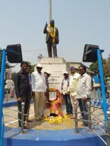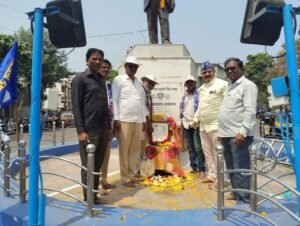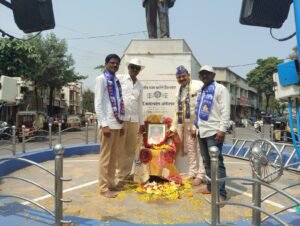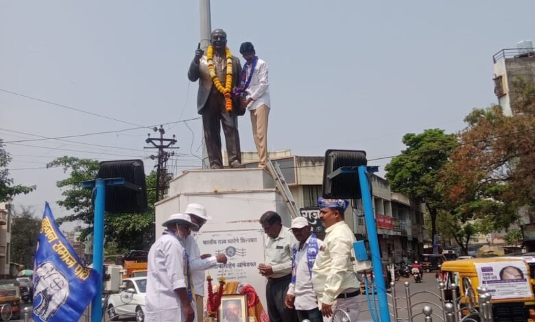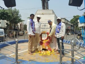 मान्यवर कांशीरामजी यांच्या प्रतिमेला भारतीय बौद्ध महासभेचे माजी जिल्हाध्यक्ष व्हि.आर.थोरवडे यांच्या हस्ते पुष्पहार अर्पण करण्यात आला.